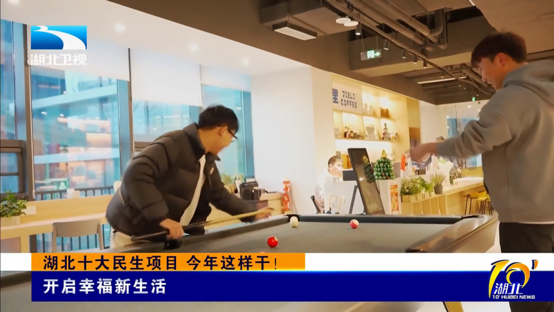 武漢市民?管桐頡:下班之后在這里待一會兒放松一下 ,像共享空間的臺球還有影院挺舒服的,東西都是免費的。
